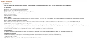 The content used here should convince shoppers why they should buy your product over the competitors. The most important features should be listed first, followed by what makes your product different, as well as explain how the product solves a problem.