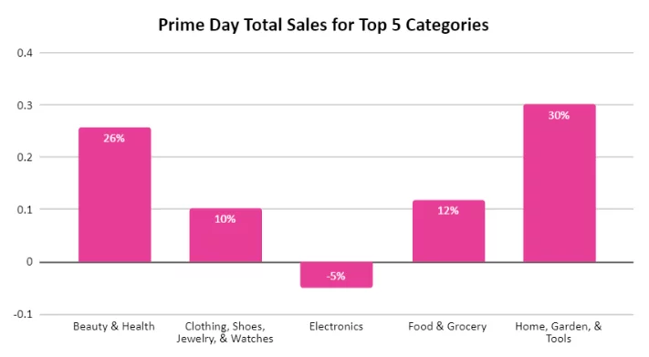 Apparel: Topping the charts, the Apparel category witnessed a staggering 74% increase in sales compared to the previous year. Shoppers clamored for the latest fashion trends and wardrobe essentials, taking advantage of enticing Prime Day offers.